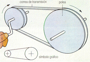 Es una cinta o tira cerrada de cuero caucho u otro material flexible que permite la transmisión del movimiento entre ambas poleas. La correa debe mantenerse lo suficientemente tensa pues de otro modo no cumpliría su cometido satisfactoriamente.